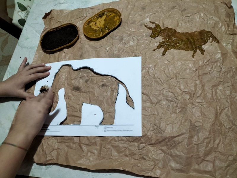 REALIZZATO USANDO CARTA PACCO, CURCUMA, PAPRIKA, TERRA E CAFFE'. PER UN EFFETTO PREISTORICO